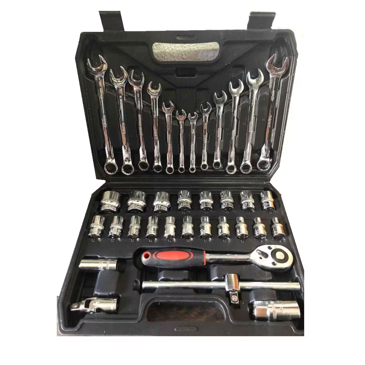Facilita tus tareas de reparación con nuestra Juego de herramientas de 37 piezas, un conjunto de herramientas de mano esenciales para cualquier entusiasta de la reparación automotriz. Este conjunto de 37 piezas, te proporcionará las herramientas necesarias para abordar una variedad de trabajos de reparación con facilidad.- Conjunto de Llaves de Zócalo Profundo: Diseñadas para alcanzar lugares de difícil acceso, estas llaves de zócalo profundo son ideales para la reparación de componentes automotrices, brindando versatilidad y eficacia.- Herramienta de Reparación HEX: Equipado con una hoja HEX de mano, nuestro conjunto es perfecto para desmontar y reparar piezas automotrices, ofreciendo precisión con rendimiento confiable.- Herramientas de Desmontaje y Reparación Automáticas: Diseñadas para abordar las necesidades específicas de la reparación de vehículos, estas herramientas garantizan una aplicación eficaz y sin complicaciones.- Material de Calidad: Fabricadas con acero al carbono duradero, estas llaves inglesas ofrecen resistencia y durabilidad, asegurando un rendimiento consistente en cada uso.- Antideslizante: La característica antideslizante de nuestras llaves proporciona un agarre seguro, facilitando el manejo de las herramientas incluso en condiciones exigentes.